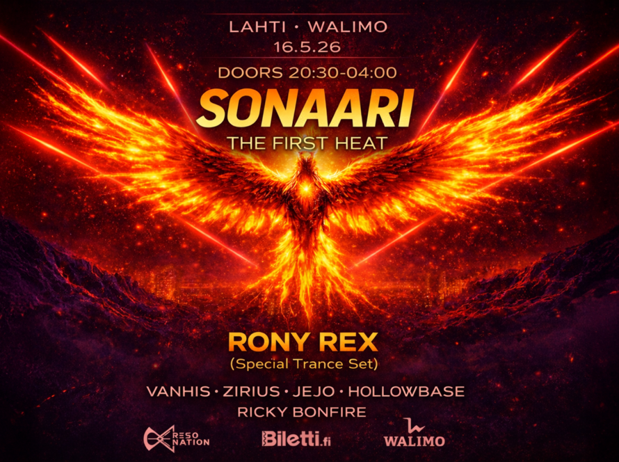 The lineup is headlined by Sean Tyas, with international artists including Daniel Skyver, Inoblivion, Jordan Taylor, Kaimo K, Ralphie B, DJ T.H., and Phase303. Finnish performers include Tempo Giusto, Rony Rex, Vanhis, JeJo, Hollowbase, Lyd14, Ricky Bonfire, Zaini, and Zirius. Additional artists performing on the terrace stage include Aesern, Discotek, DJKrissB, Duckforce, Endlos, JeJo, JSomerstone, Lime, Melanchor, Pheat, SEKA, Sundll, TAI, Therapist, Yeti, as well as Luxonia collective members Axity, KLASS, KUOKKA, and Robbe.